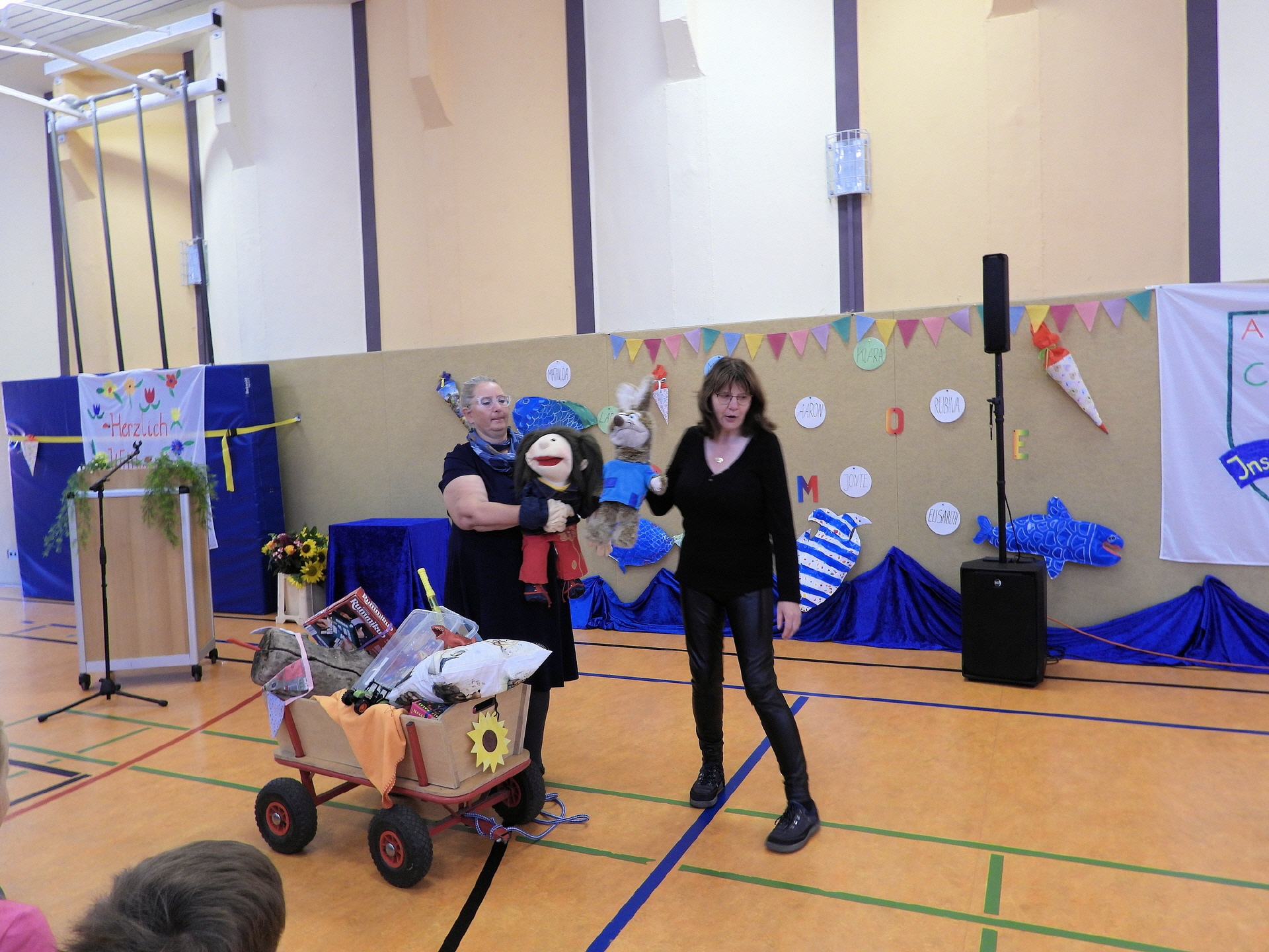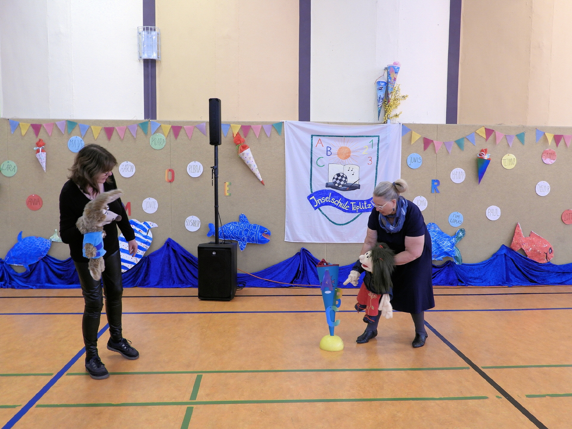 Frau Simon, die stellvertretende Schulleiterin, gratulierte jedem Kind persönlich zum Schuleingang und überreichte eine Sonnenblume, die wie jedes Jahr vom Töplitzer Einkaufsmarkt Zosky gesponsert wurde. Der amtierende Schulleiter, Herr Wäschke, konnte leider nicht an der Veranstaltung teilnehmen, da er mit seiner Familie selbst die Einschulung seines Kindes feierte.