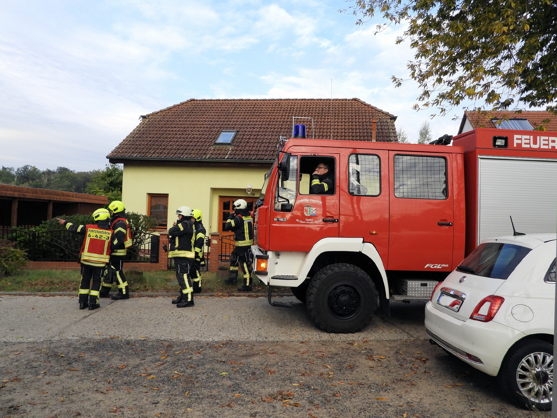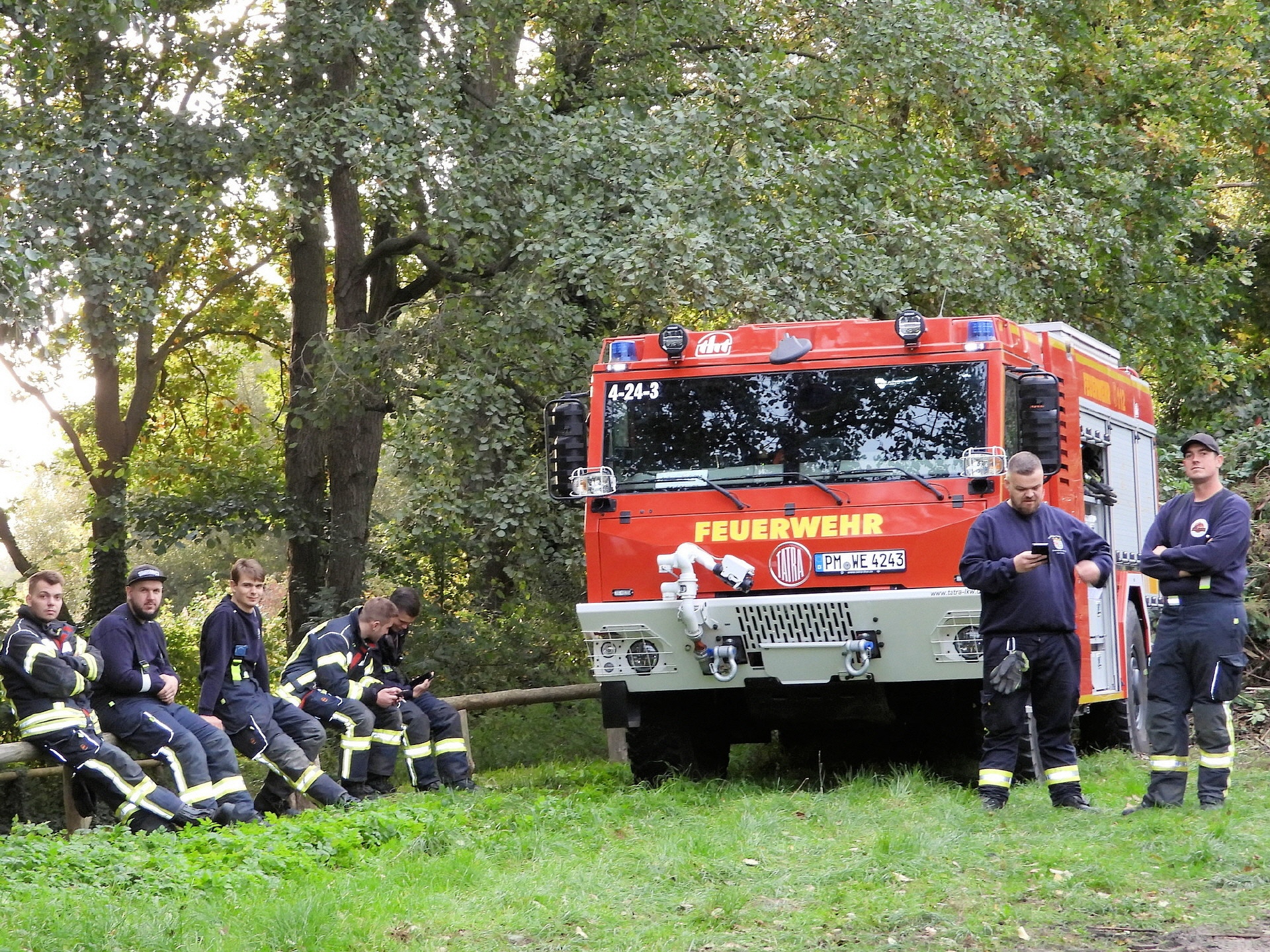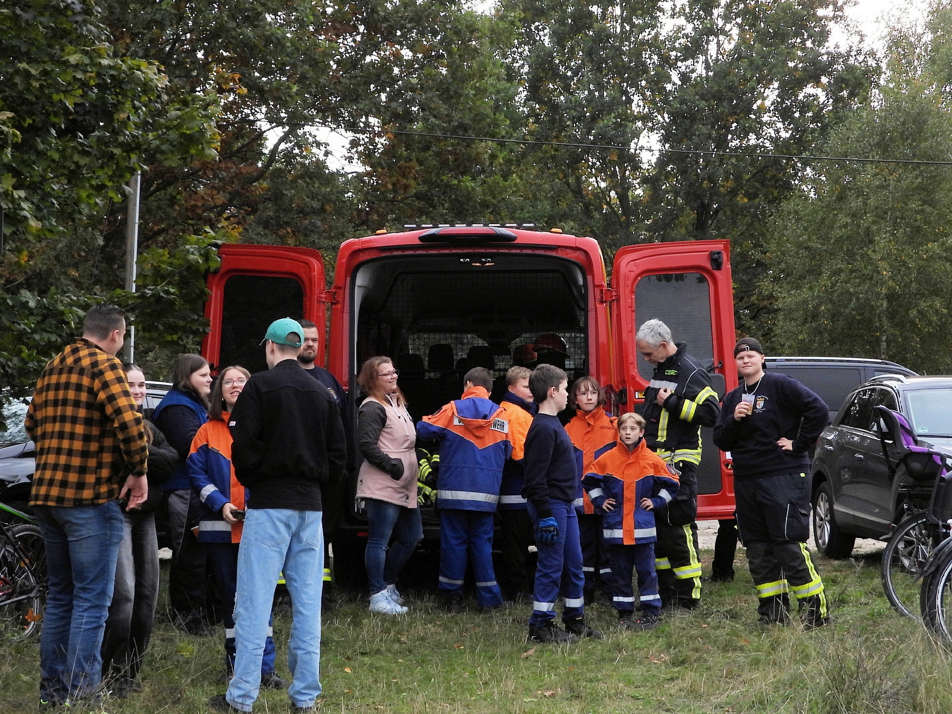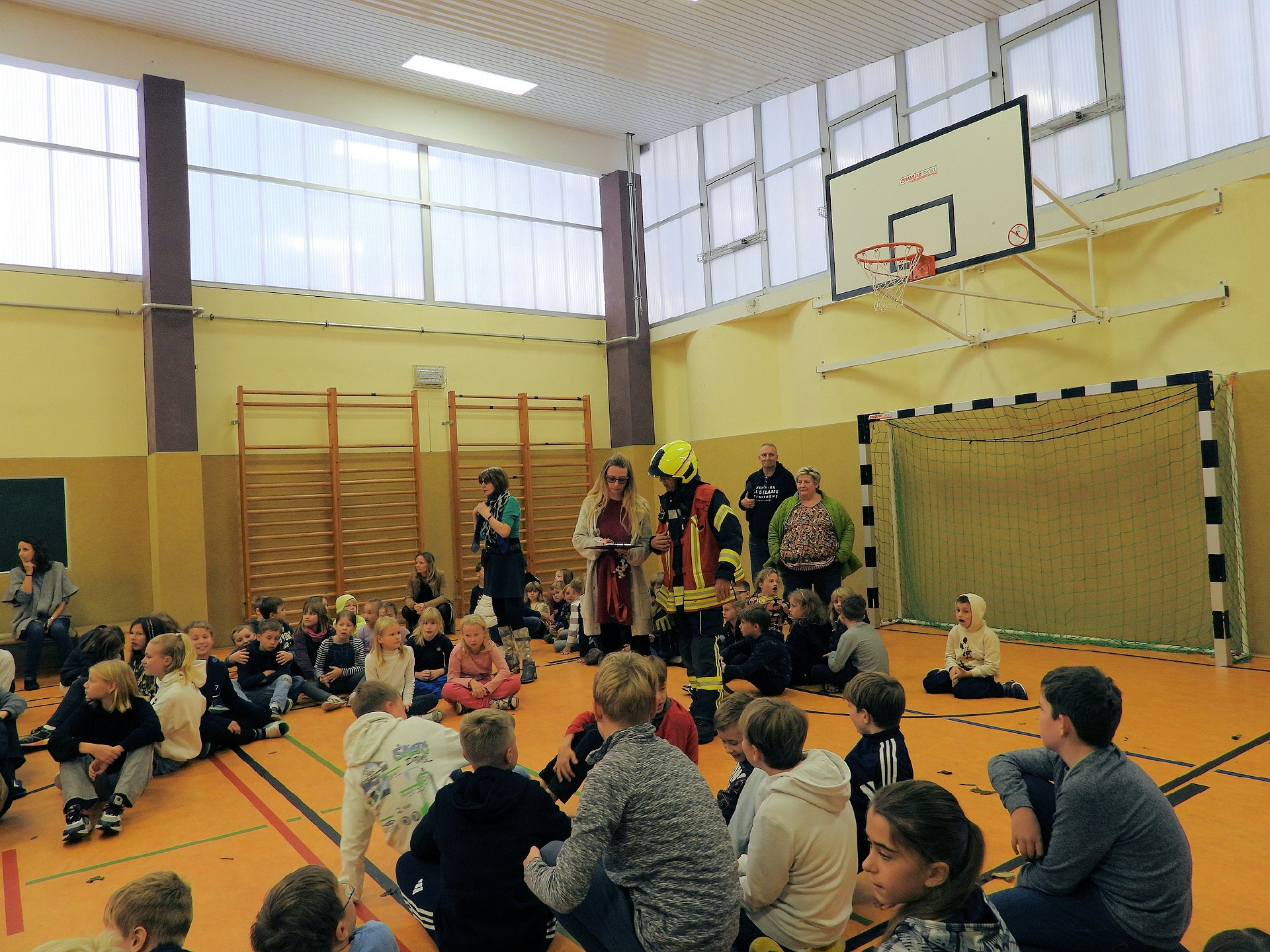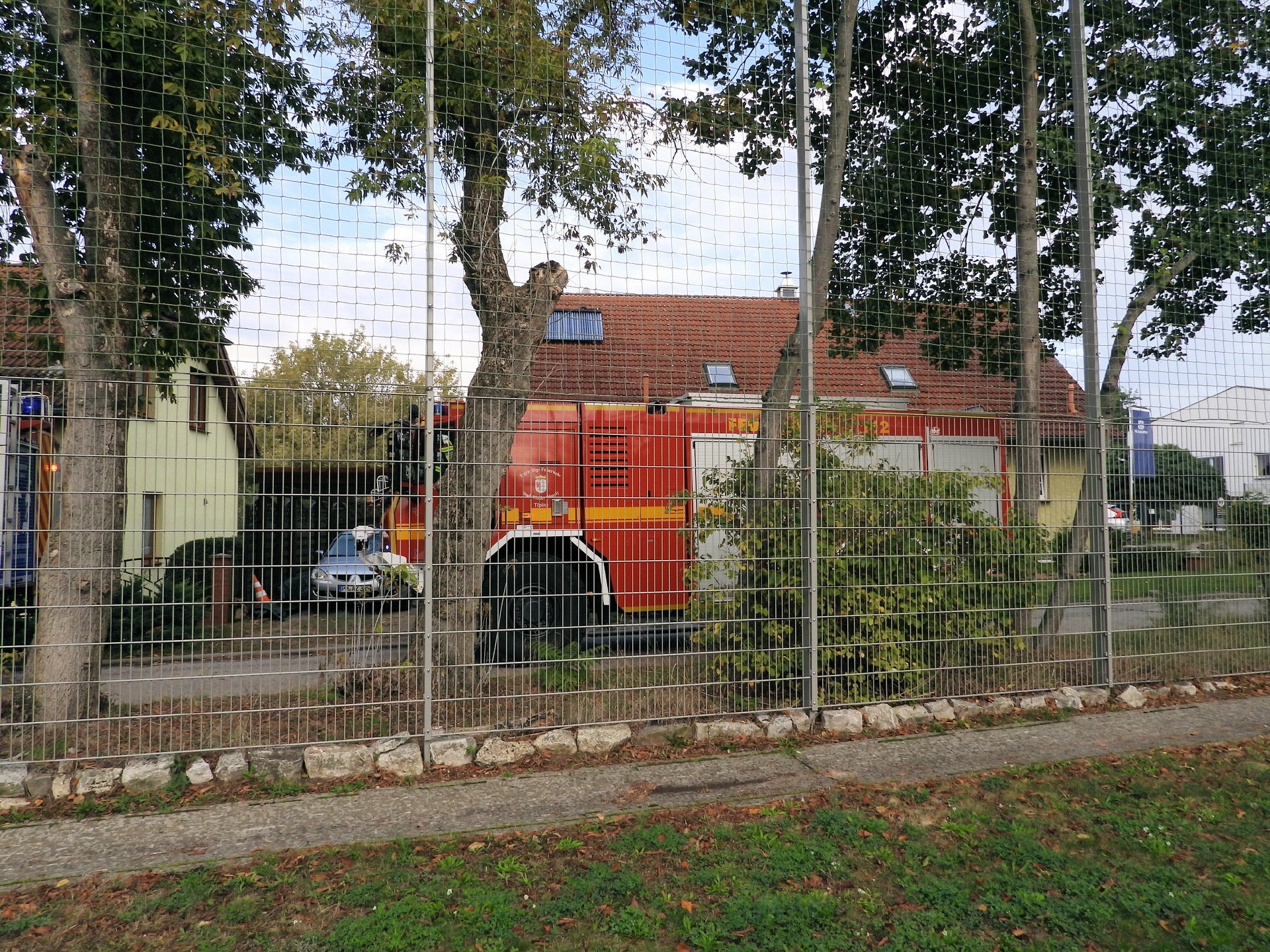 Und klar, was wäre ein Feueralarm ohne Feuerwehr? Kurz nach der Alarmierung kamen zwei Löschfahrzeuge der Freiwilligen Feuerwehr Werder / Ortsfeuerwehr Töplitz angefahren. Das hat natürlich auch die "ganz Kleinen", die sowas noch nicht kannten, ziemlich aufgeregt. Als es dann leicht anfing zu regnen, sind die Schüler*innen in die Turnhalle der Inselschule gegangen, wo sie weiter von Erzieher*innen, Lehrer*innen und Feuerwehrleuten betreut wurden.