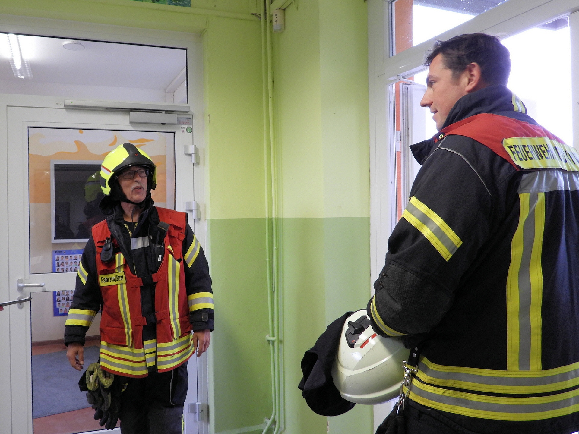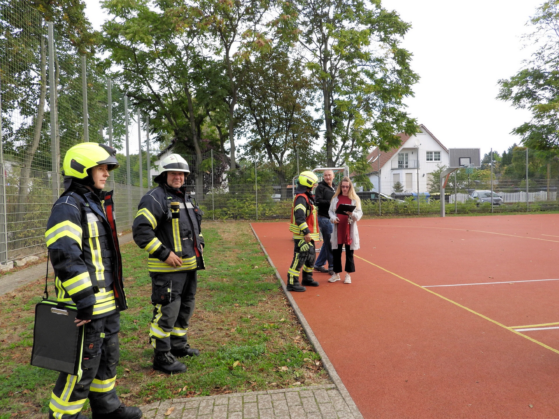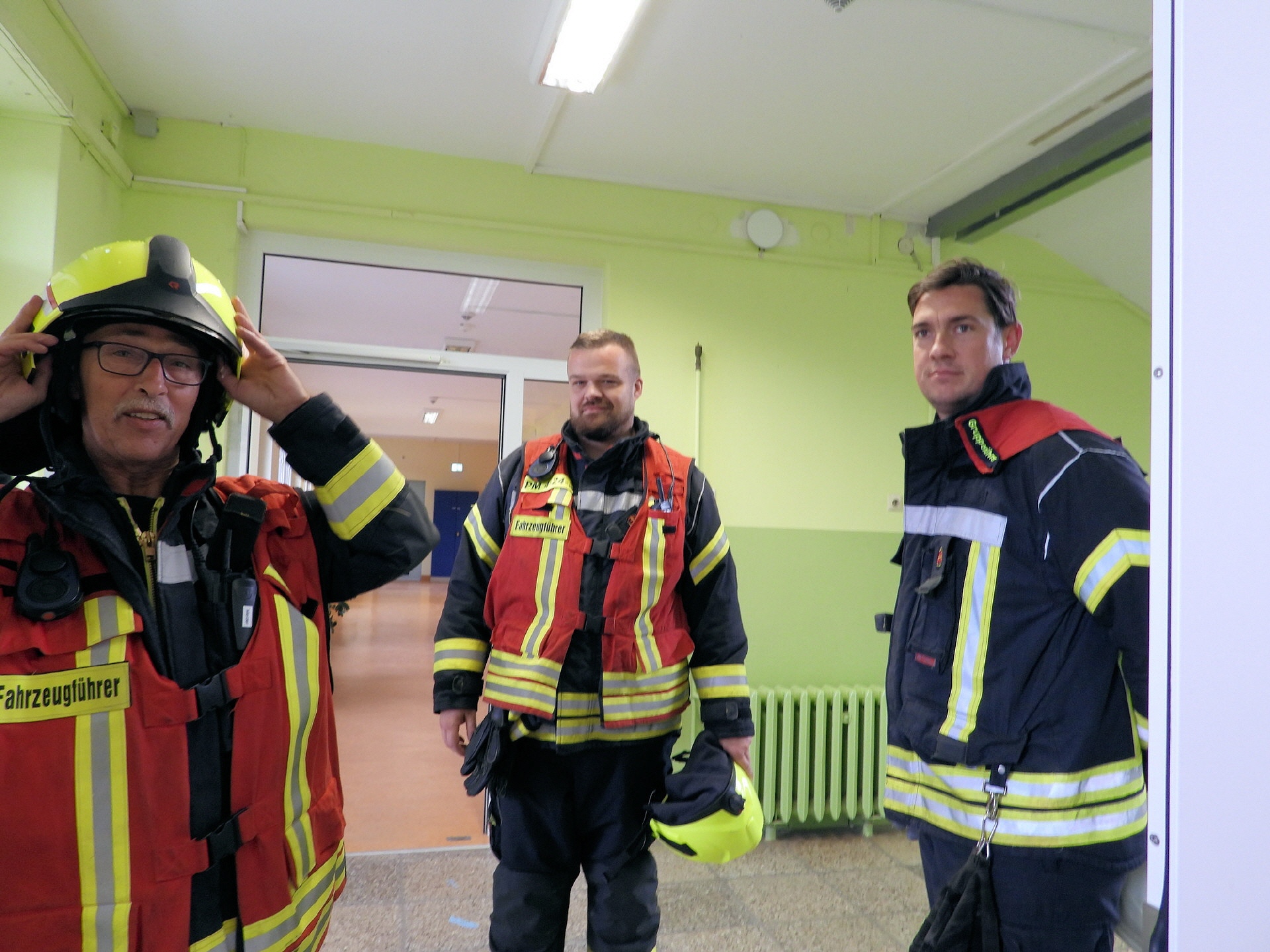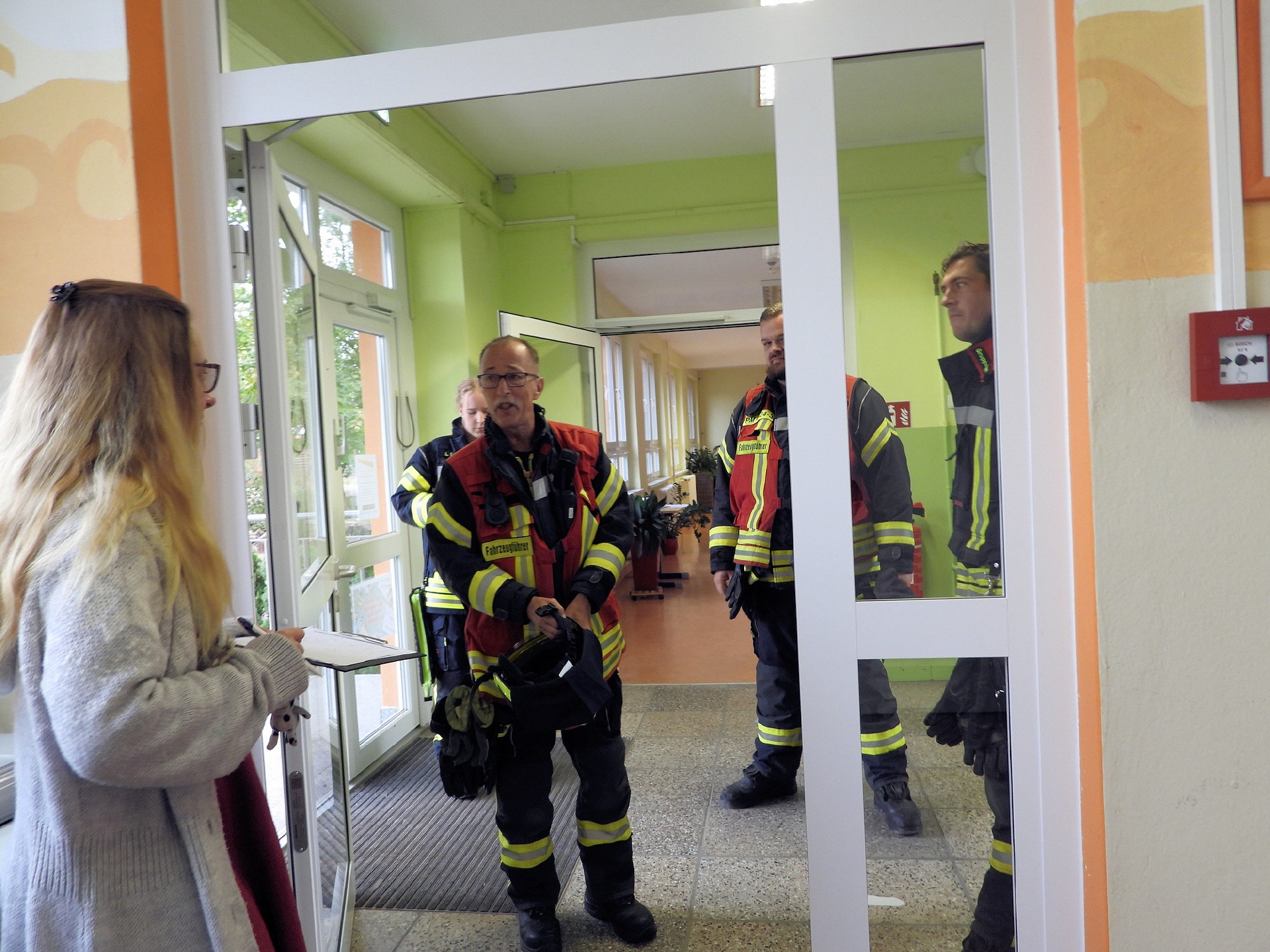 Weitere Einsatzkräfte der Feuerwehr haben im Schulgebäude nach eventuell zurückgebliebenen Personen gesucht und alle sicherheitsrelevanten Aspekte gecheckt. Alles in allem lief das Ganze nach Plan. Eine genauere Auswertung der Übung wird es dann zwischen der Schulleitung und der Einsatzleitung der Feuerwehr geben.