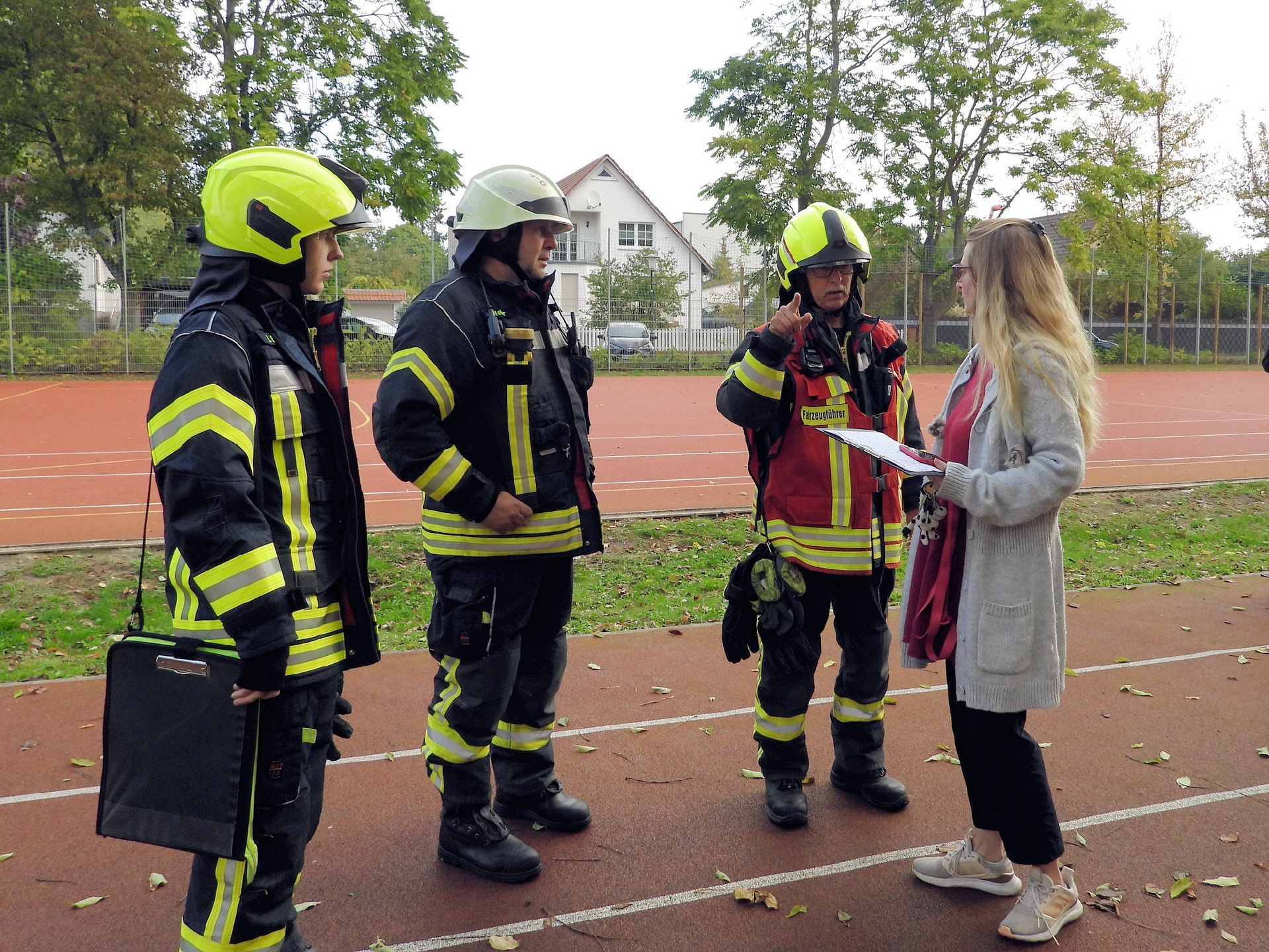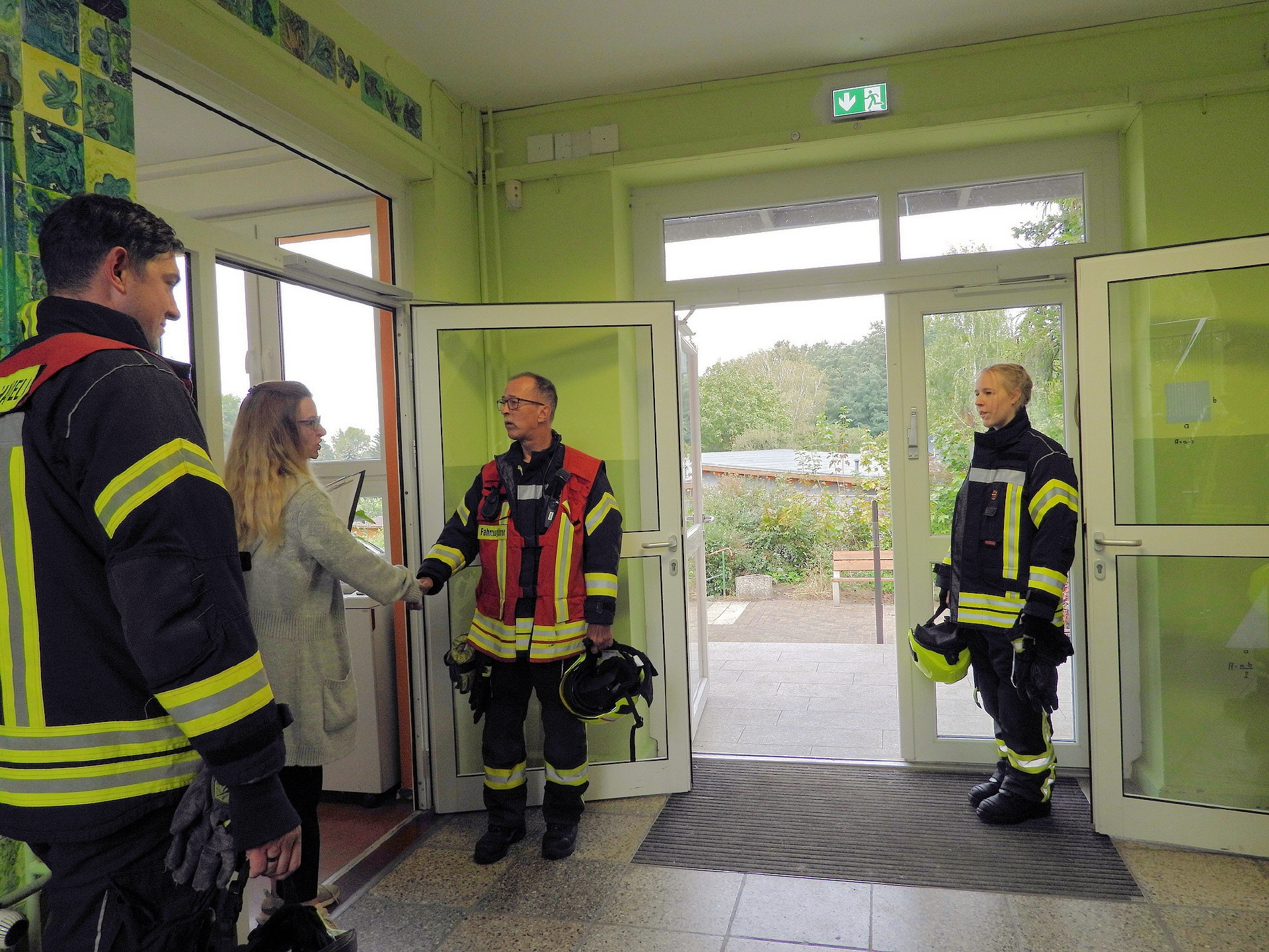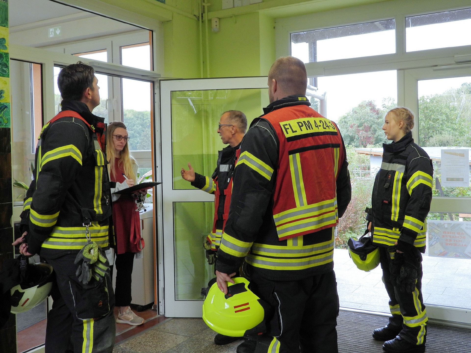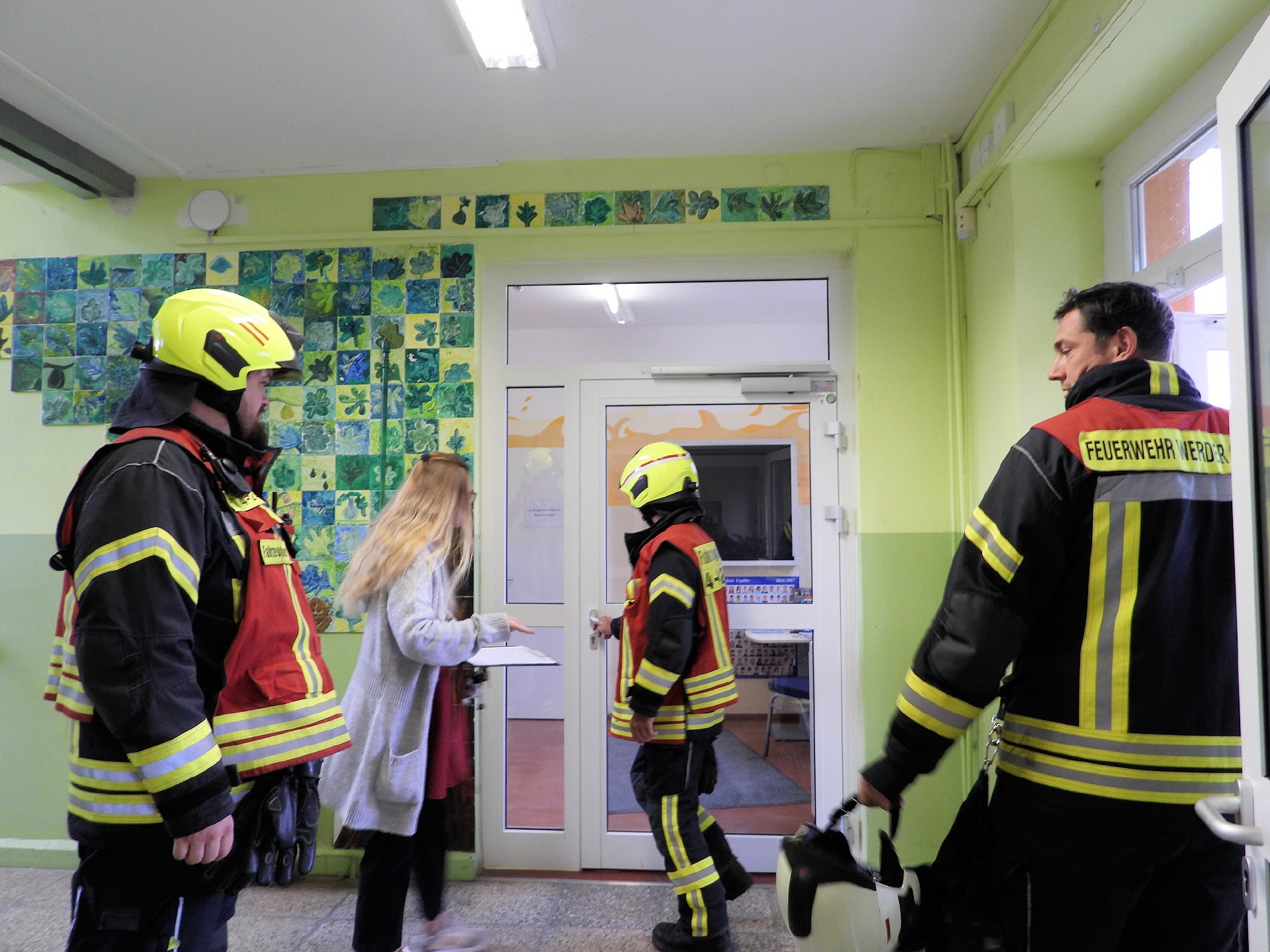 Weitere Einsatzkräfte der Feuerwehr haben im Schulgebäude nach eventuell zurückgebliebenen Personen gesucht und alle sicherheitsrelevanten Aspekte gecheckt. Alles in allem lief das Ganze nach Plan. Eine genauere Auswertung der Übung wird es dann zwischen der Schulleitung und der Einsatzleitung der Feuerwehr geben.