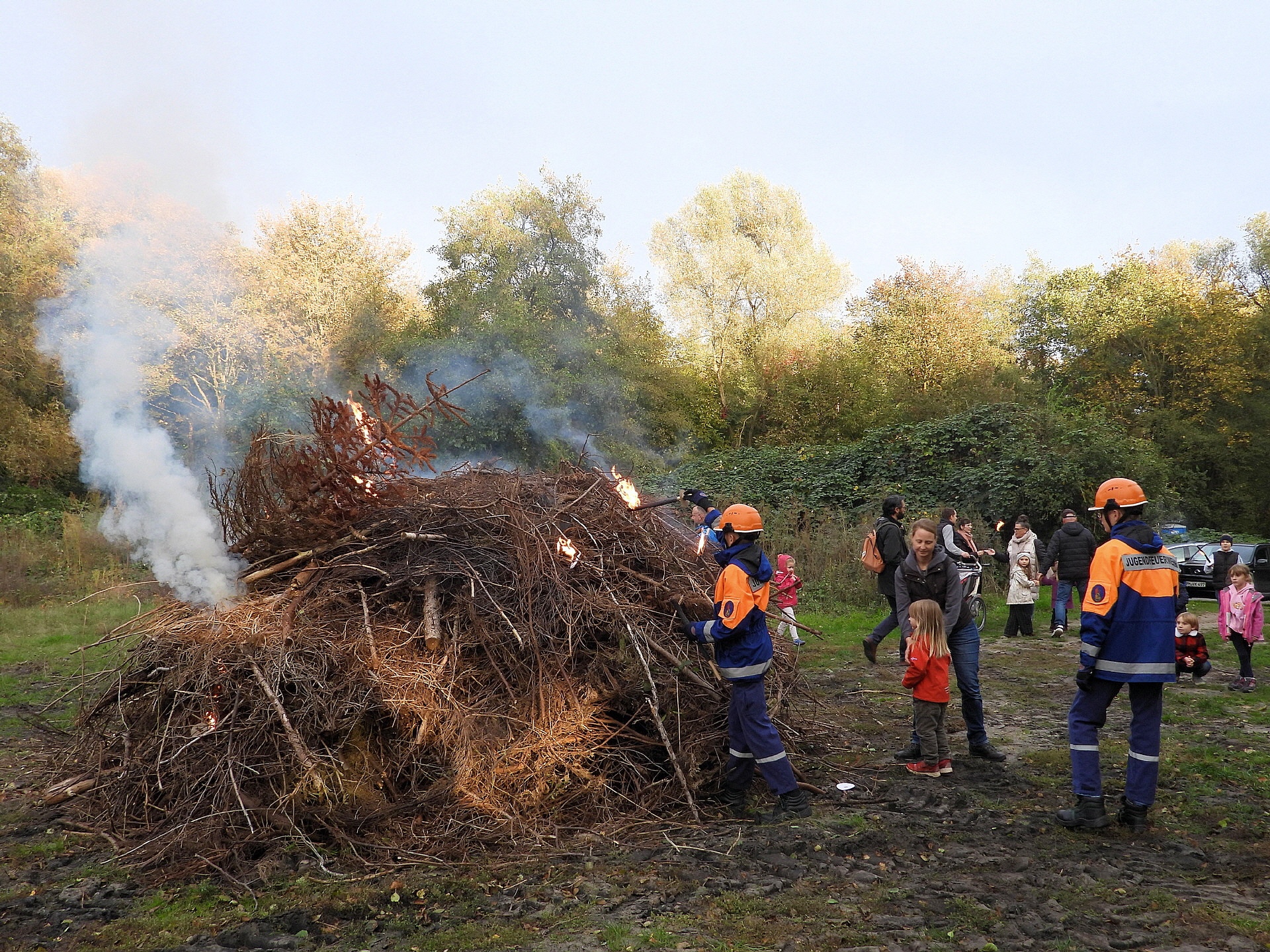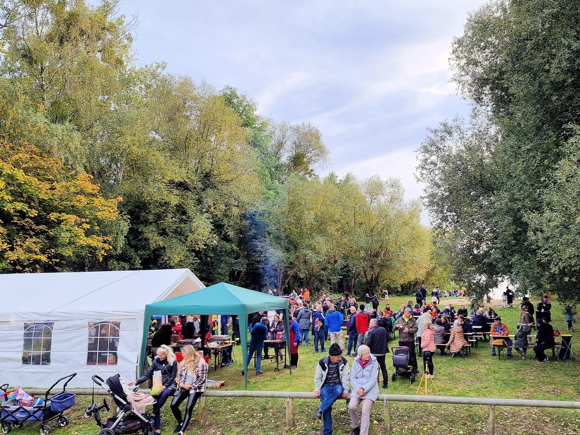Nach dem Drachensteigen ging's mit der Jugendfeuerwehr im Umzug zum Badestrand, wo das Herbstfeuer entfacht wurde. DJ Oli und der Inselsoundbollerwagen sorgten für die richtige Musik, während der Töplitzer Sportverein den Grill anheizte. Der Schulförderverein hatte coole Getränke am Start und die Schüler der 6. Klassen der Inselschule boten Crêpes, Schmalzstullen und noch viel mehr an.