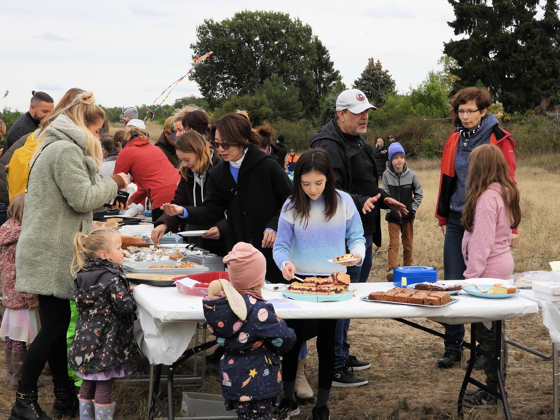 Dieses Jahr hatten wir beim Töplitzer Herbst- und Drachenfest wieder echt Glück mit dem Wetter! Ein Wechsel mit leichter Bewölkung und Sonnenschein sowie ein bisschen böiger Wind – perfekt, damit die vielen Drachen super in den Himmel steigen konnten. Für den kleinen Hunger zwischendurch gab's von den Kids und Eltern der Flex-Klassen der Inselschule leckeren Kaffee, Kuchen und andere Naschereien.