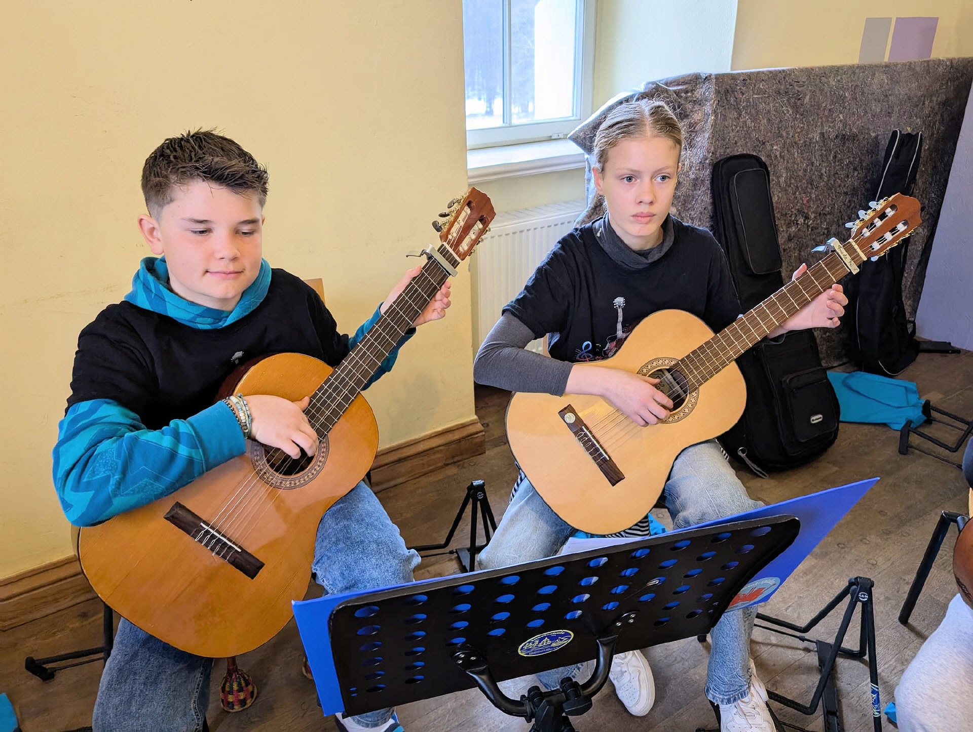 Die Schülerinnen und Schüler bewiesen eine große Selbständigkeit und die Orientierung im Schloss fiel ihnen leicht. Die Tage waren durchgetaktet, wie das bei Musikern so üblich ist. Gesamtproben und die, für die einzelnen Gitarrenstimmen, wechselten sich ab. Schließlich war es das Ziel, am Samstag vor den Eltern und Gästen ein fehlerfreies Konzert in Frankfurt/Oder zu gestalten und deshalb hieß es üben, üben, üben.