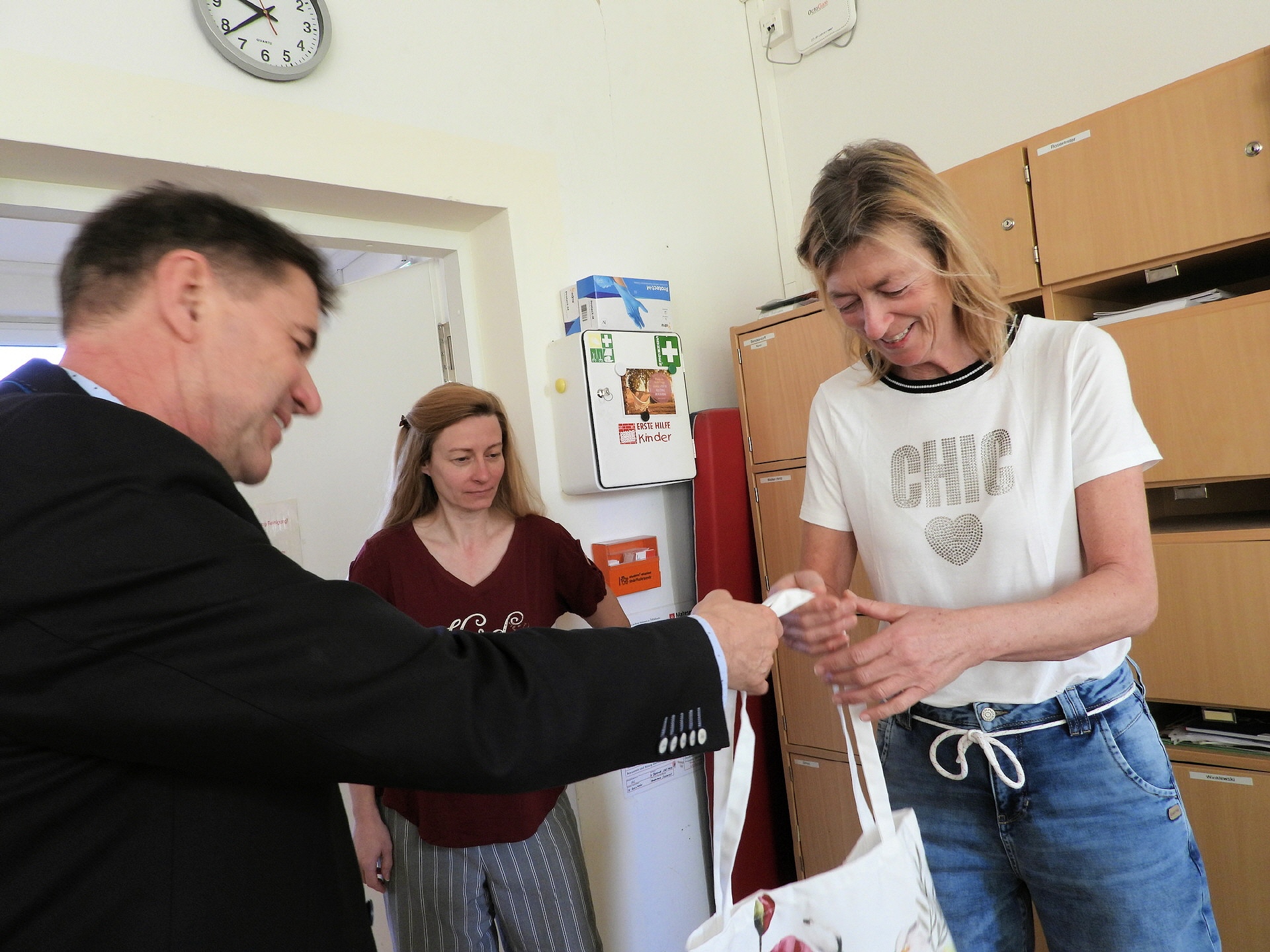 Wie jedes Jahr hat es sich der Ortsbeirat nicht nehmen lassen, den Frauen in den pädagogischen Einrichtungen, der Inselschule Töplitz und der Kita-Inselnest sowie den Frauen der technischen Teams beider Einrichtungen zum Internationalen Frauentag zu gratulieren. Der Ortsvorsteher von Töplitz, Frank Ringel, hat nicht nur die Grüße des Ortsbeirates übermittelt, sondern auch ein kleines Dankeschön-Präsent überreicht.