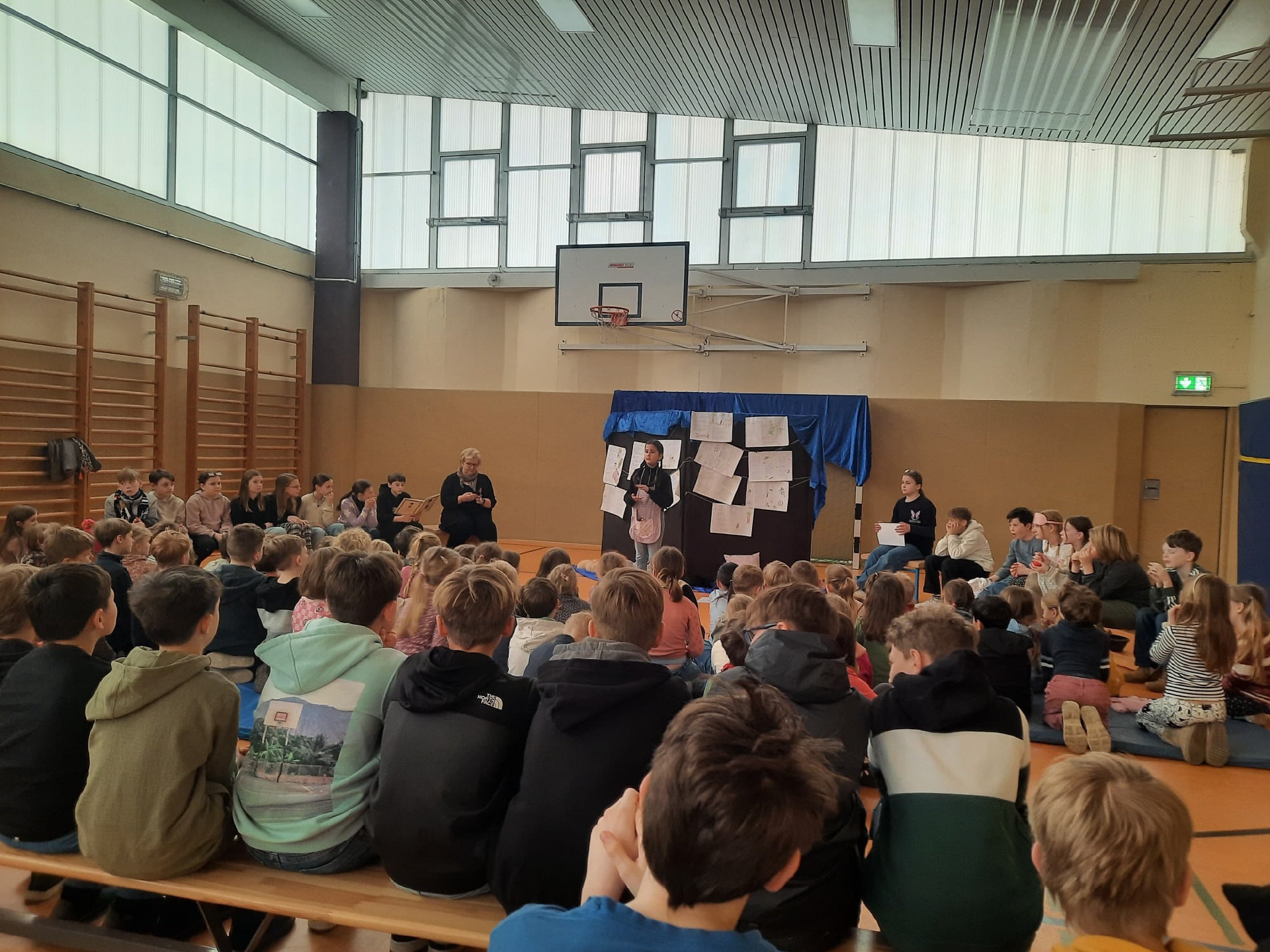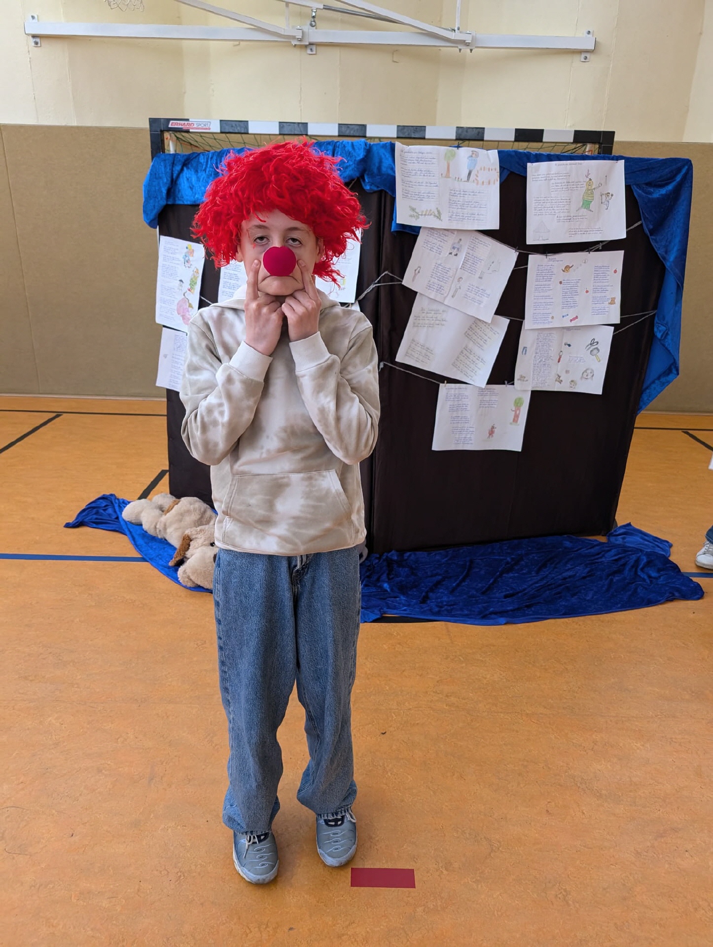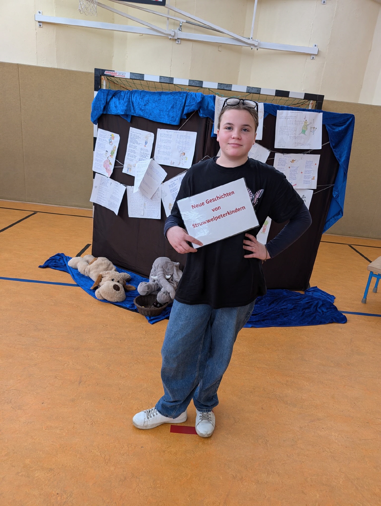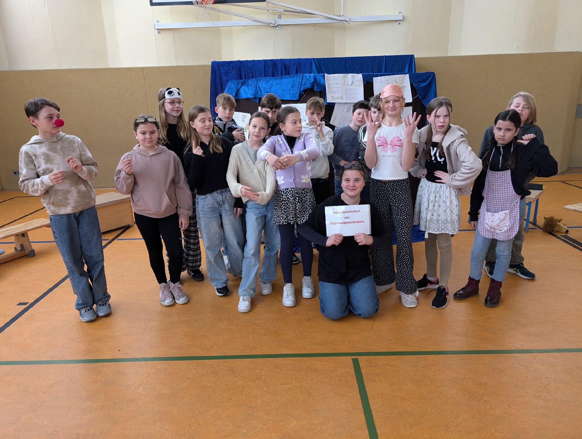 28.03.2025 Heute Theateraufführung Geschichten von Struwwelpeterkindern der Klasse 5a in der Turnhalle
