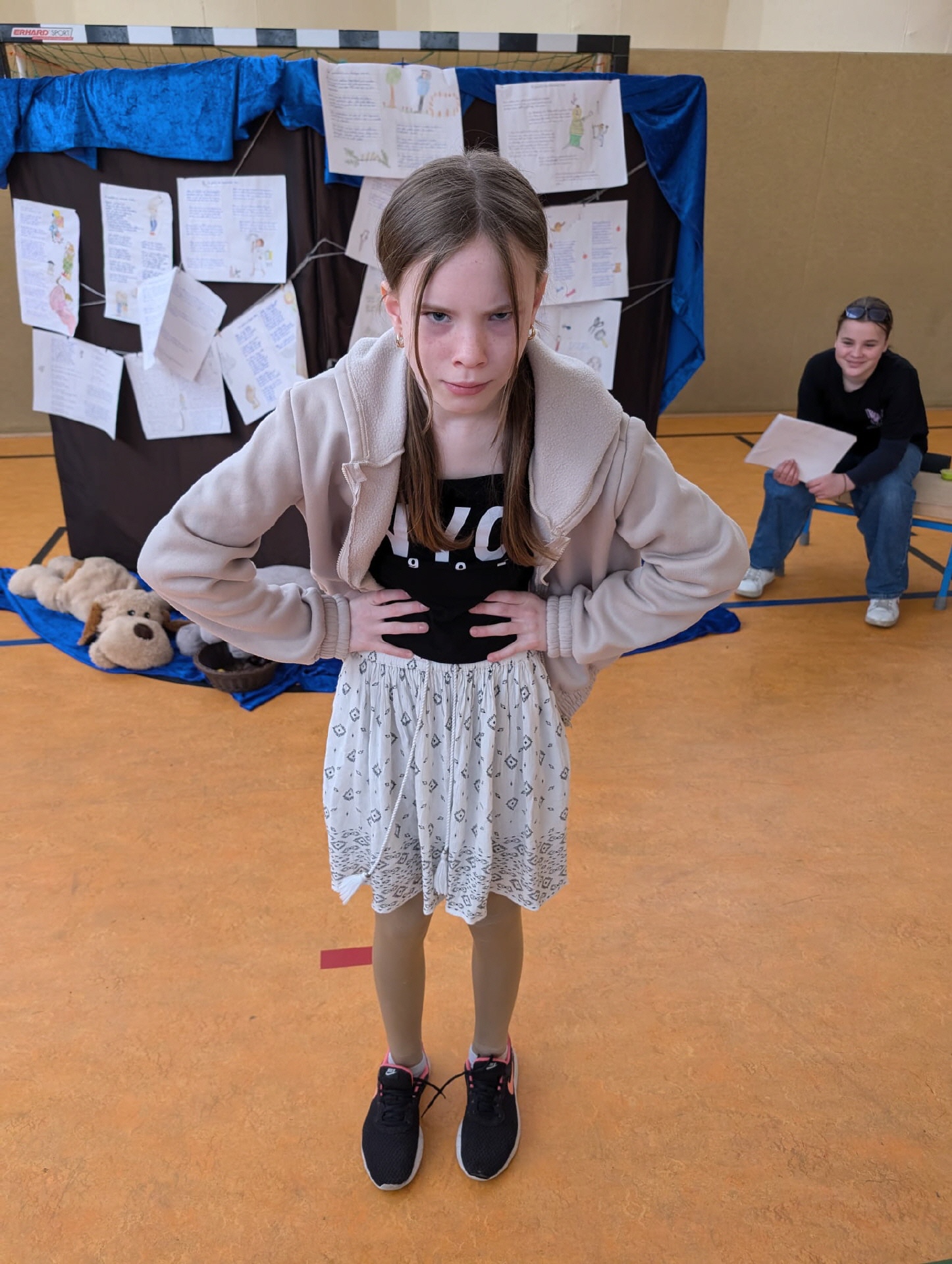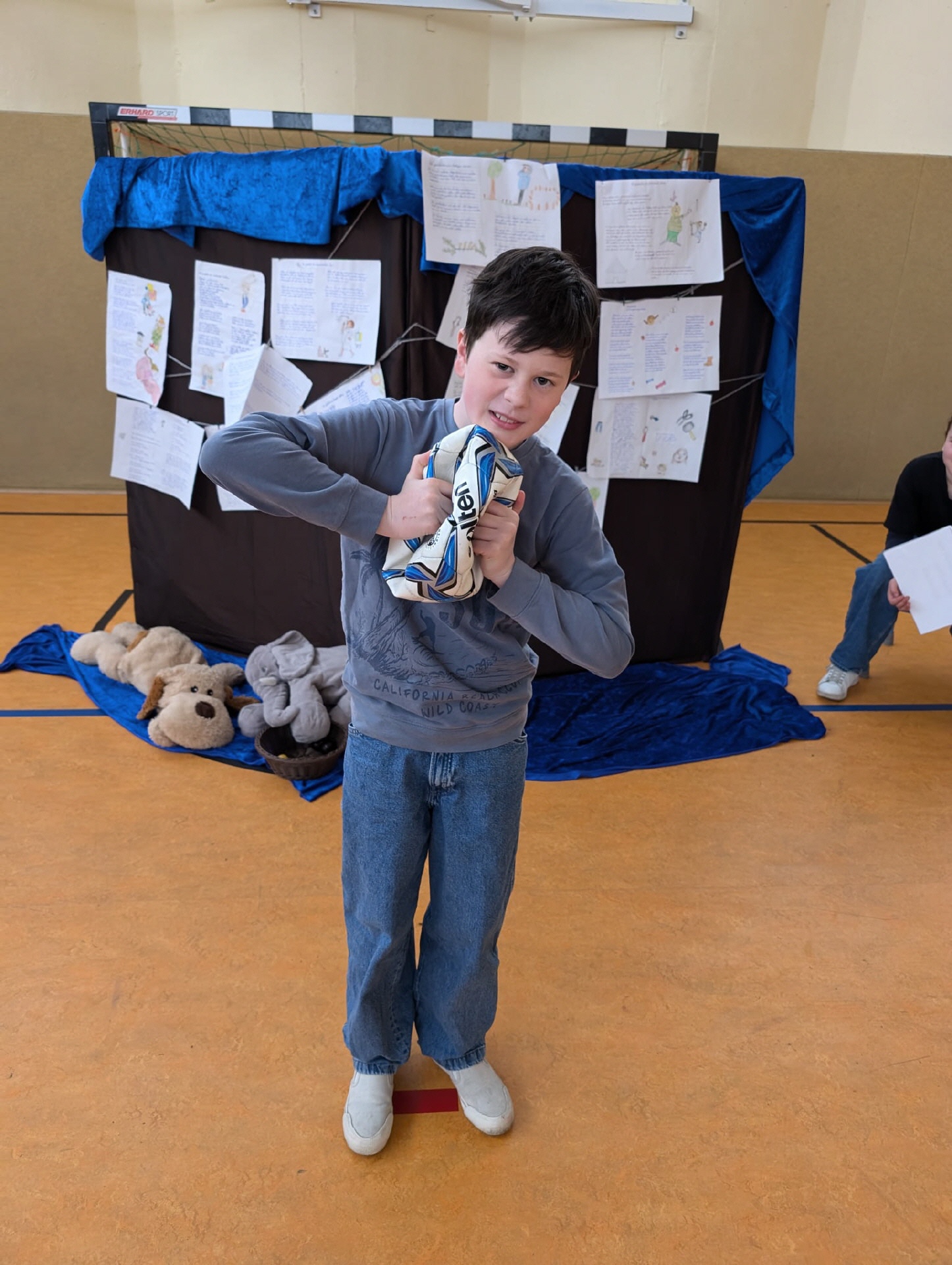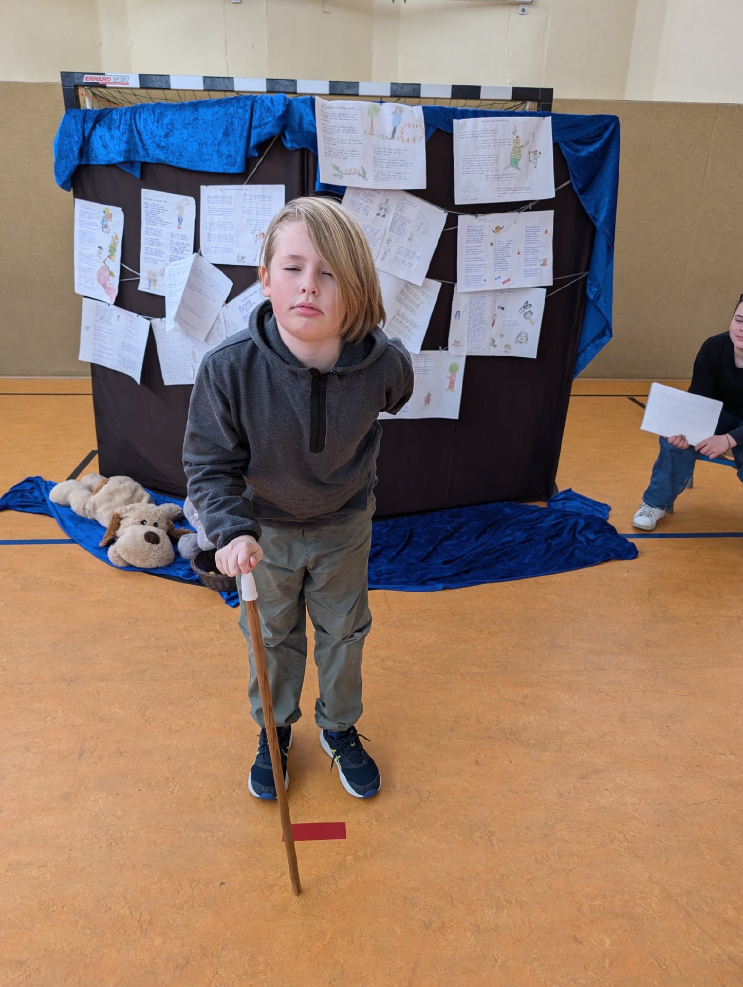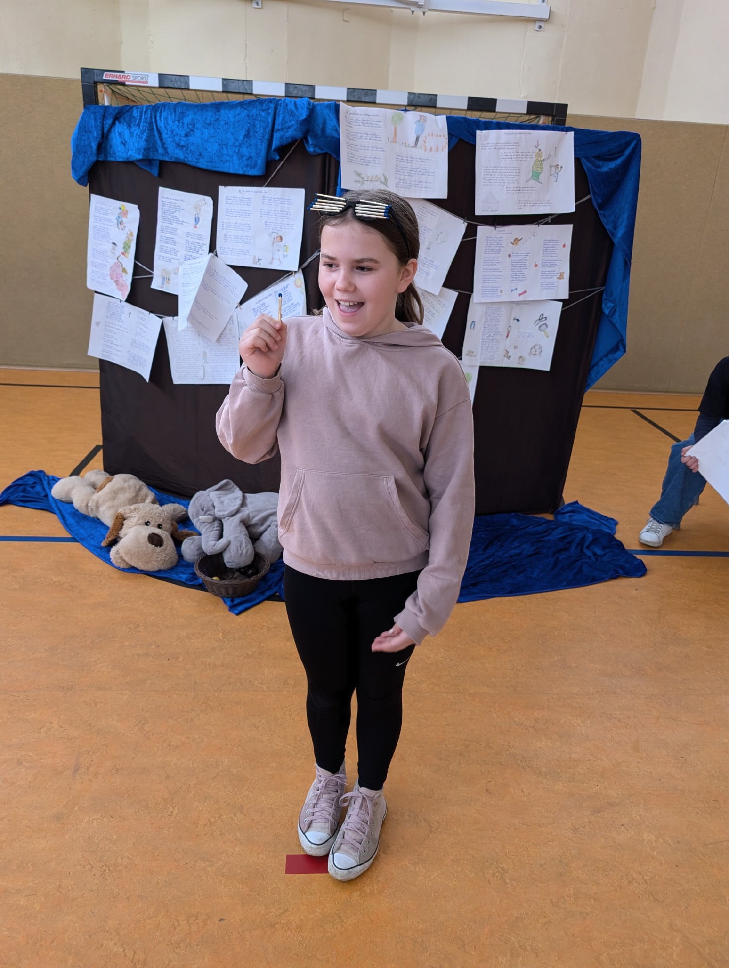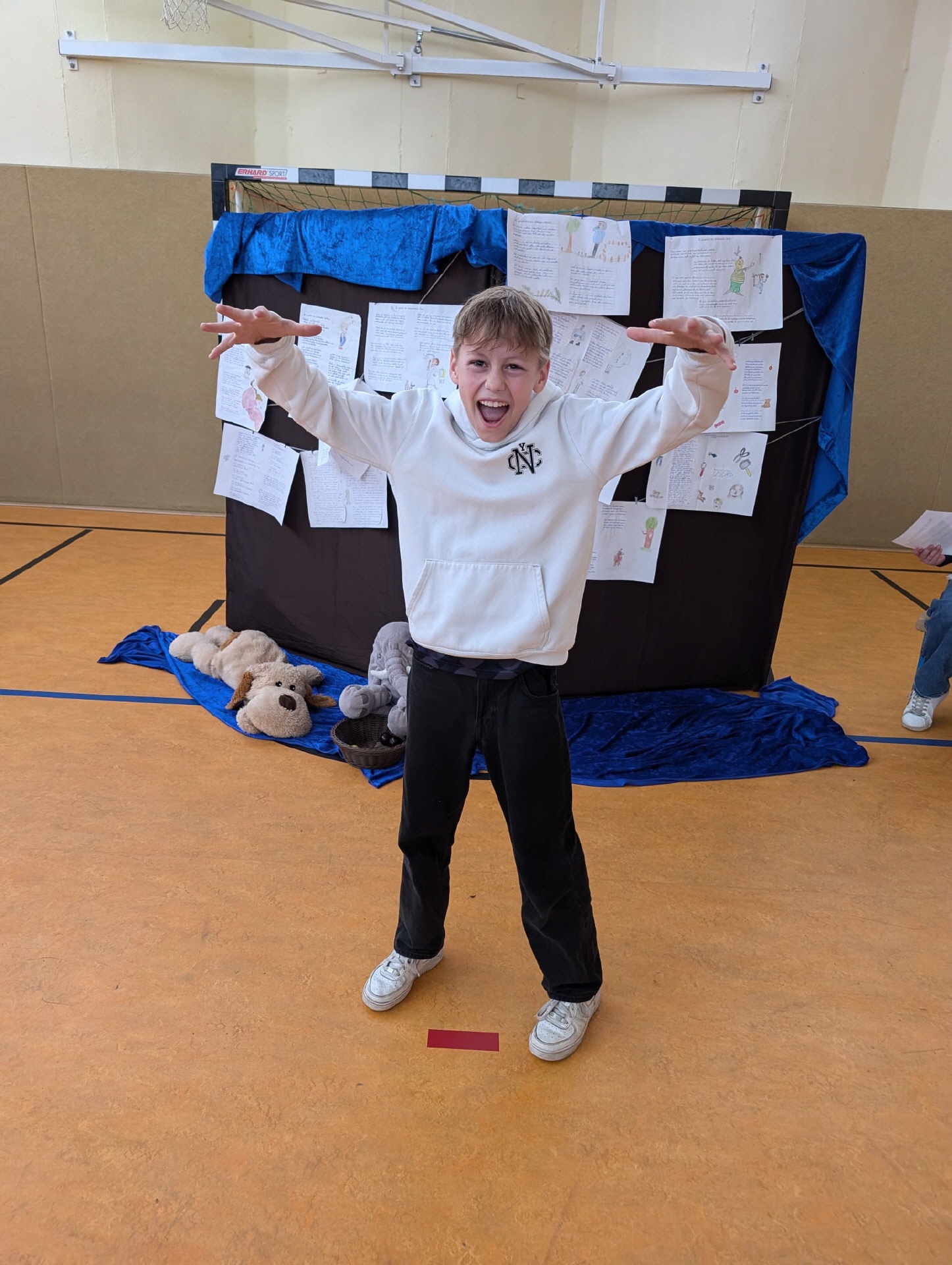 28.03.2025 Heute Theateraufführung Geschichten von Struwwelpeterkindern der Klasse 5a in der Turnhalle