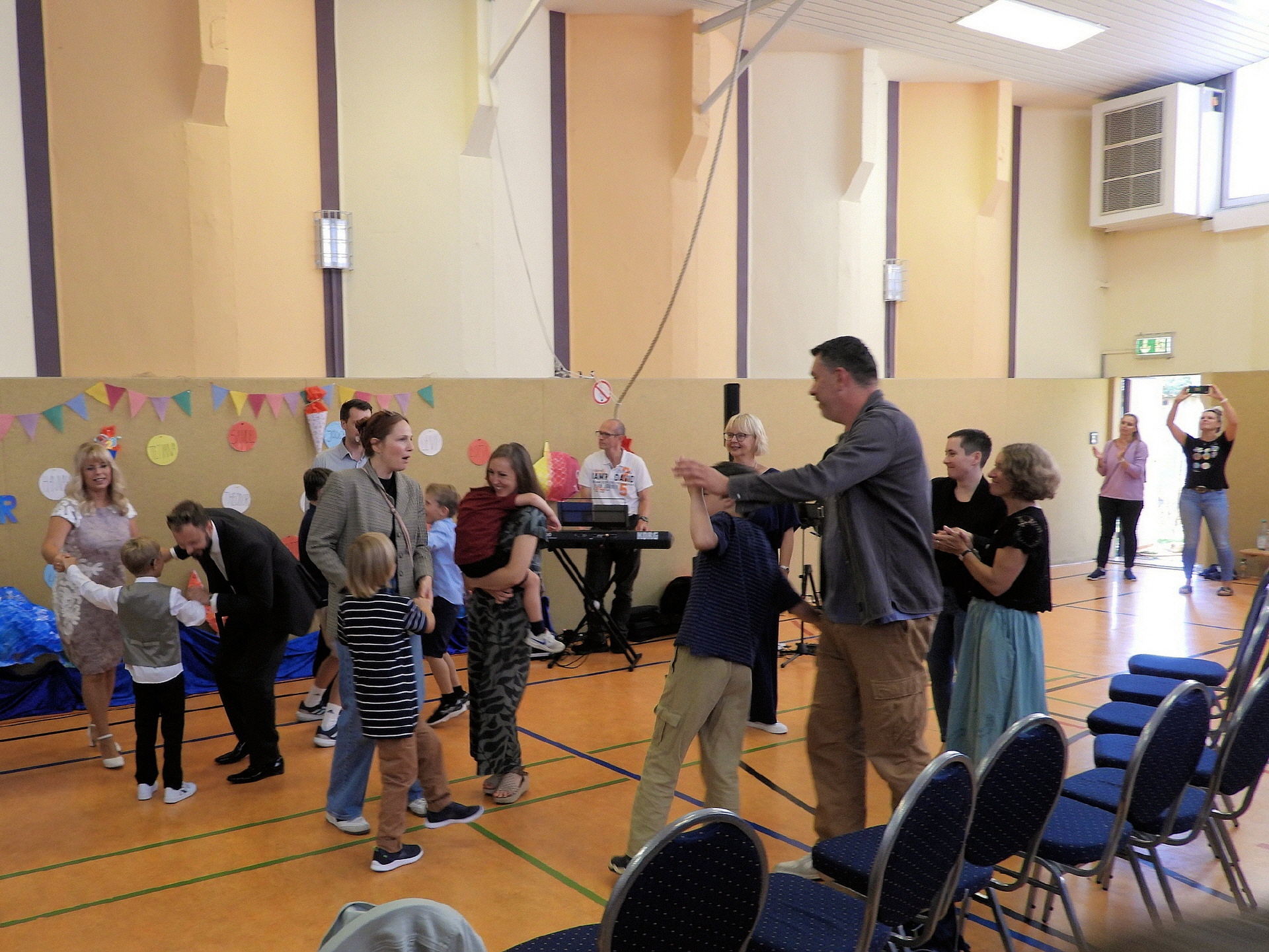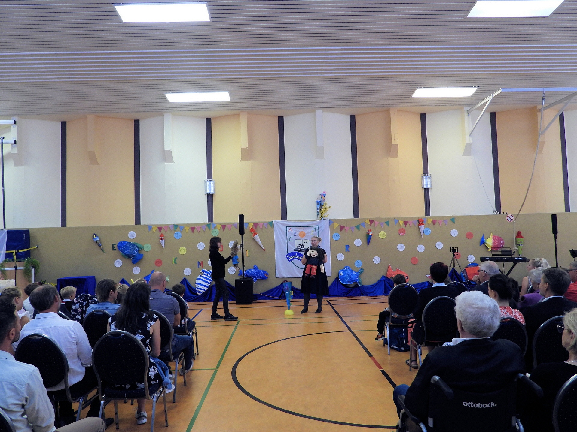 Am Samstag, dem 6. September 2025, fand die feierliche Einschulung unserer 29 neuen Kinder in der Sporthalle der Inselschule statt. Die Halle war festlich geschmückt und ein Programm mit Singen und Tanzen stand im Mittelpunkt der Veranstaltung. Die musikalische Umrahmung übernahm das Duo von Andreas Kalkbrenner. Die besondere Stimmung wurde von Detlev Huber mit seiner Kamera eingefangen. Gemeinsam mit ihren Familien erlebten die Kinder einen besonderen Anlass, der den Beginn eines wichtigen neuen Lebensabschnitts markiert.